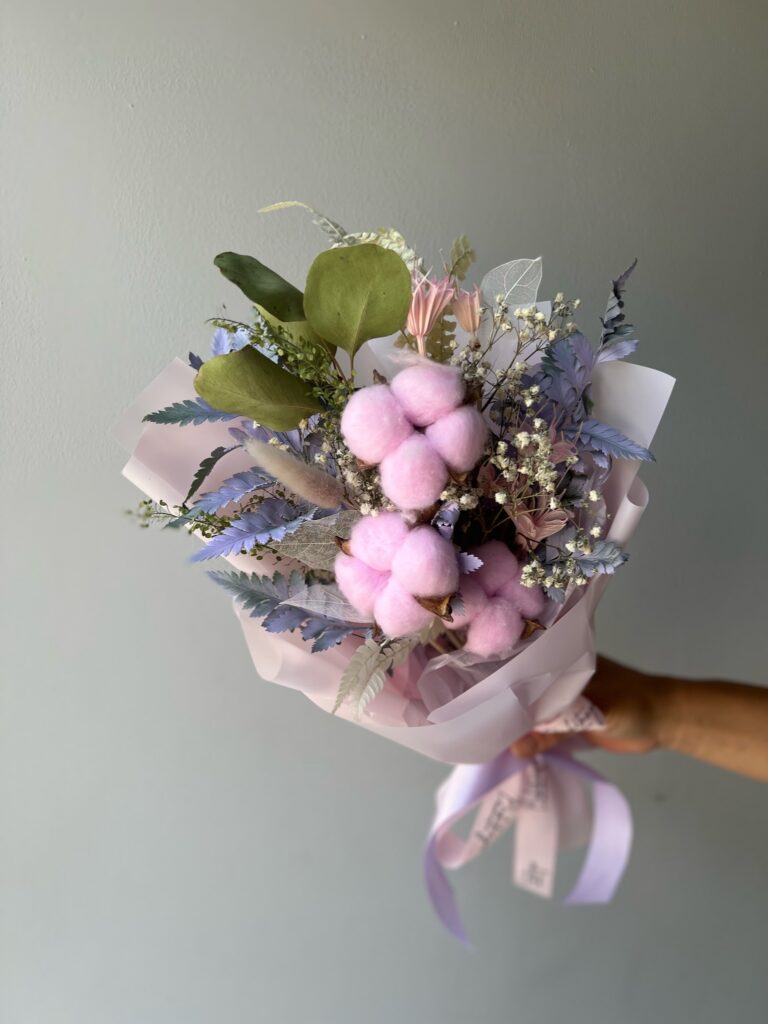 Свежий и воздушный букет в холодных оттенках словно наполнен дыханием моря и прохладой раннего утра. Его цветовая гамма напоминает о прозрачной морской воде, мягком тумане над берегом и лёгком ветре, скользящем по поверхности волн. Композиция навевает ощущение спокойствия и умиротворения, создавая атмосферу чистоты, гармонии и внутреннего баланса, будто вы на мгновение оказались у океана, вдали от суеты и шума повседневной жизни.